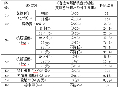 適合于搶修、橋梁支座錨固灌漿、軌道錨固灌漿等,特別適合于高速鐵路、客運(yùn)專線、高速公路等的支座灌漿。